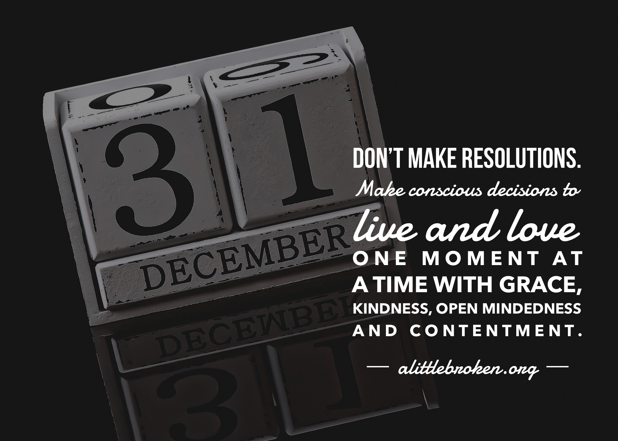 As we count down the hours to a new decade, it seems to me that more than new year resolutions, we could all benefit from some thoughtful life choices that hold both community and personal well being side by side. Don’t make resolutions. Make conscious decisions to live and love one moment at a time with grace, kindness, open mindedness and contentment. Simple practices can yield stunning change for both individuals and communities.